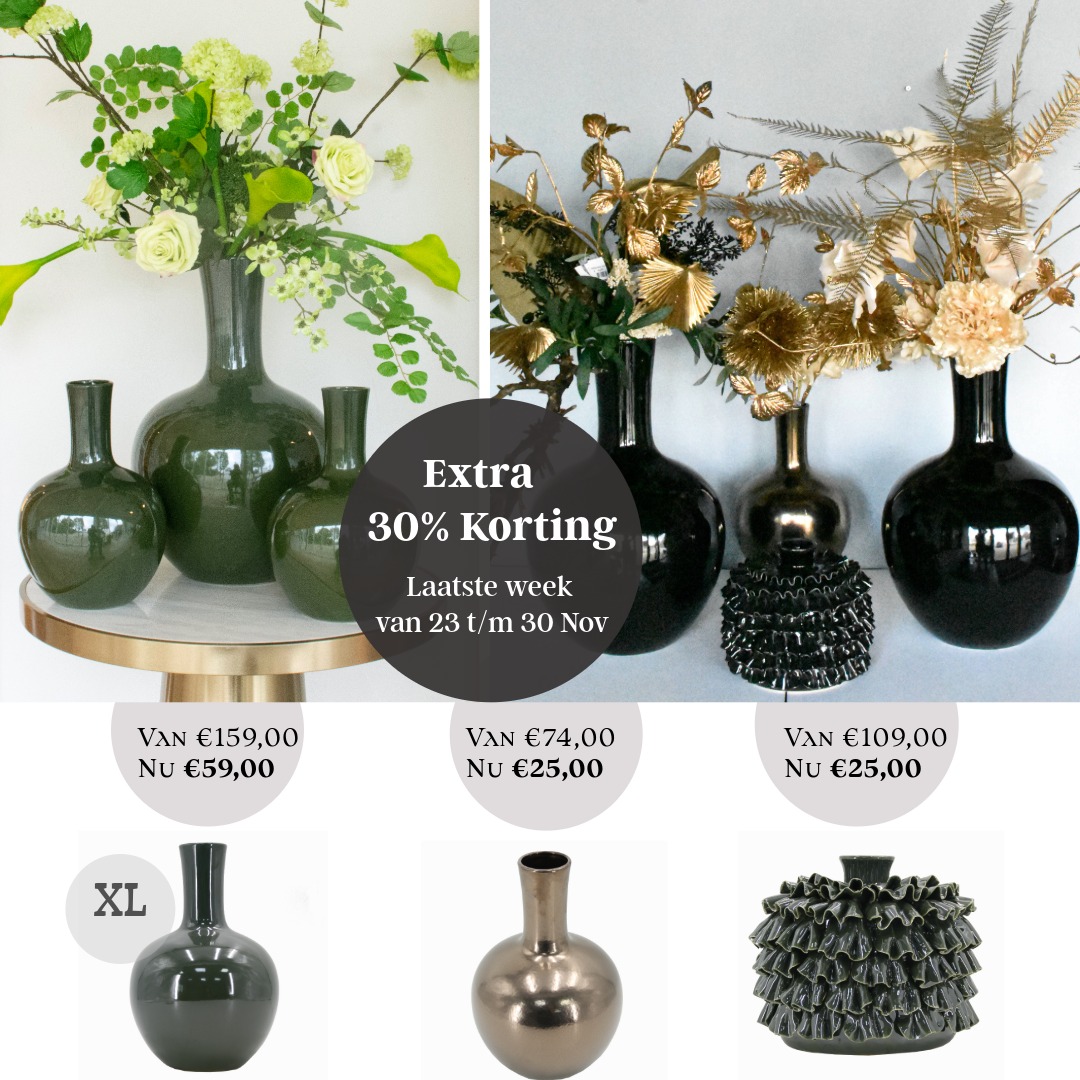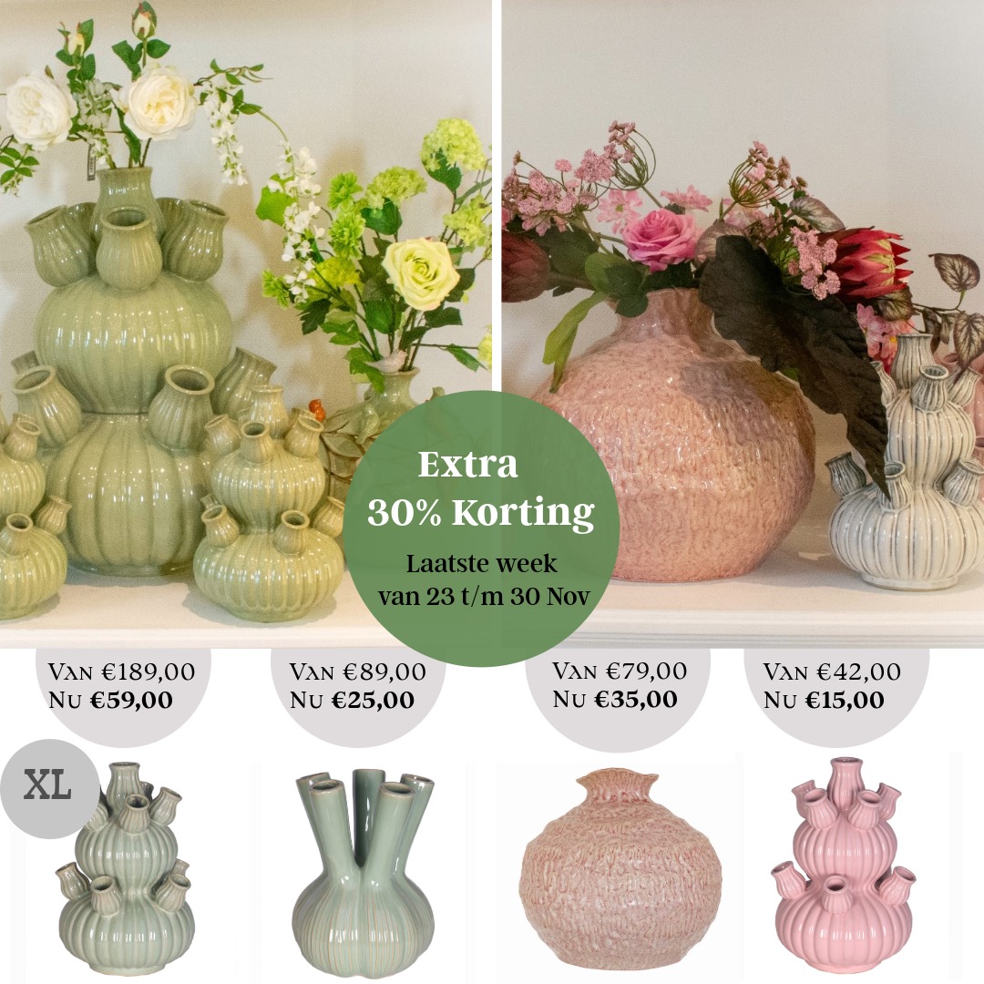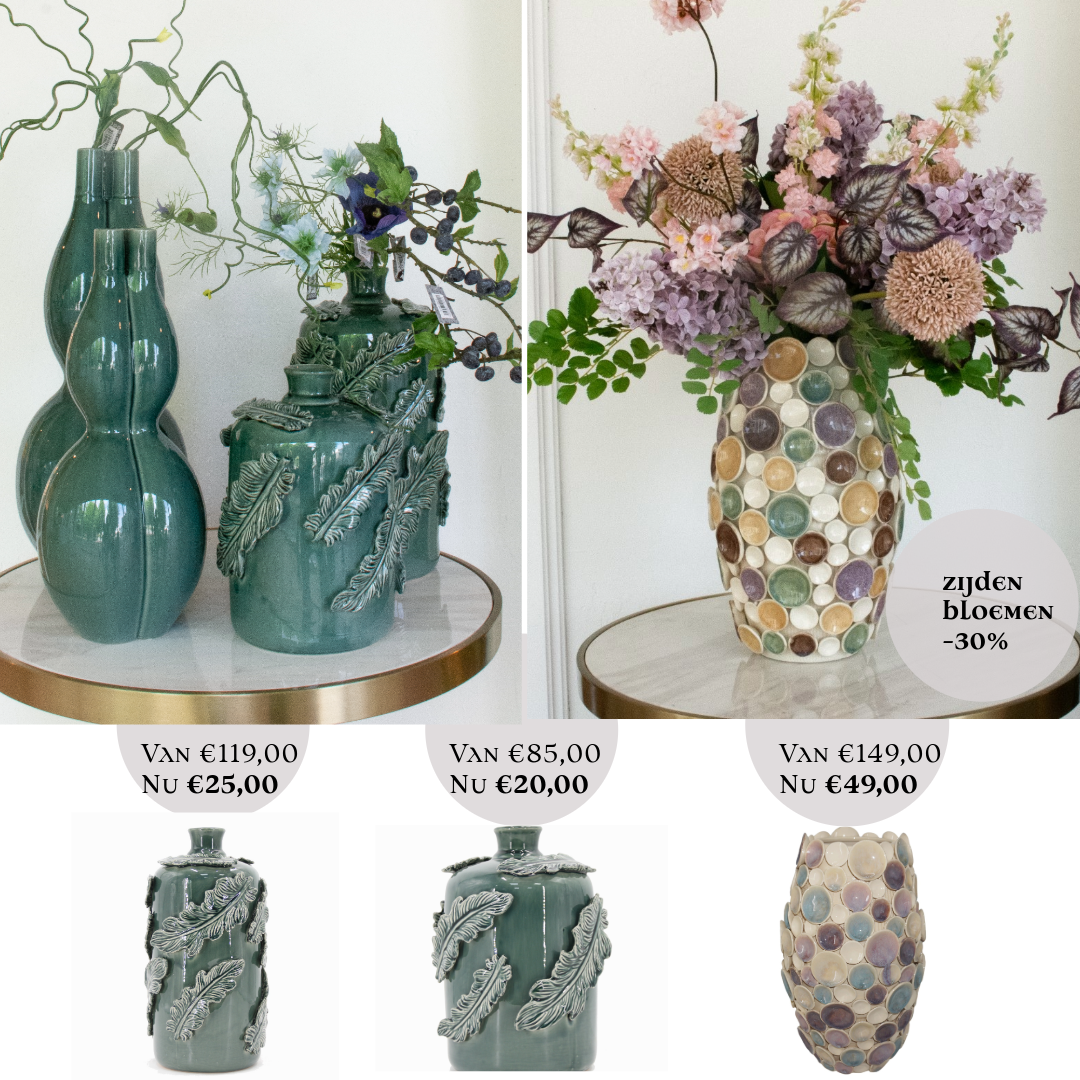 In November houden wij een grote leegverkoop voordat wij er definitief mee stoppen. Dus pak je kans voordat het te laat is Kom snel langs in onze grote winkel van 2.000m2 met een enorme collectie exclusieve vazen en zijden bloemen tegen bodem prijzen.