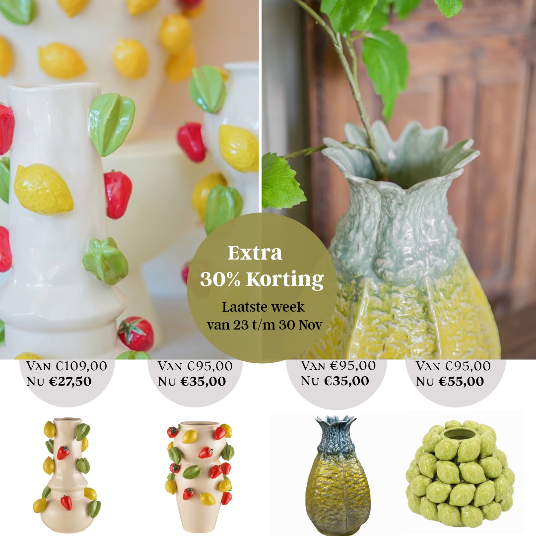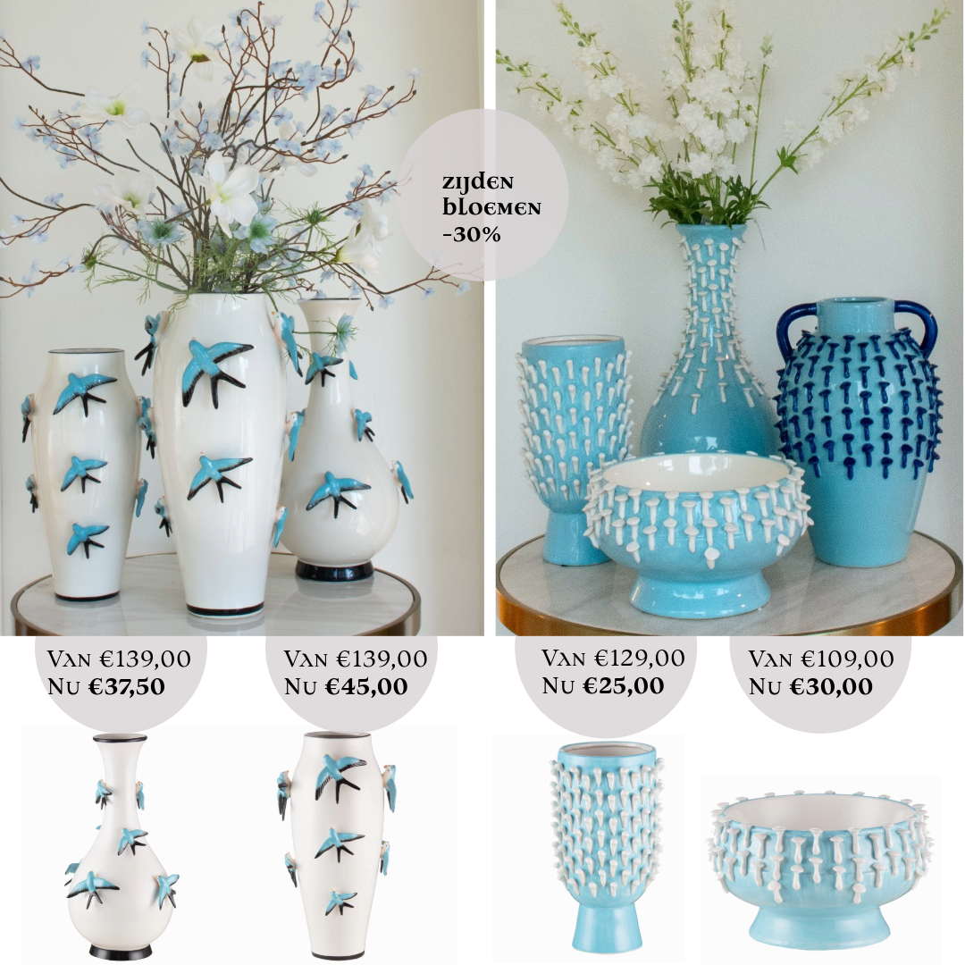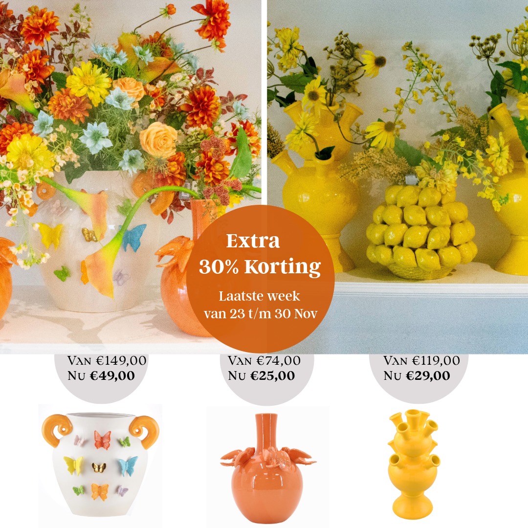 In November houden wij een grote leegverkoop voordat wij er definitief mee stoppen. Dus pak je kans voordat het te laat is Kom snel langs in onze grote winkel van 2.000m2 met een enorme collectie exclusieve vazen en zijden bloemen tegen bodem prijzen.